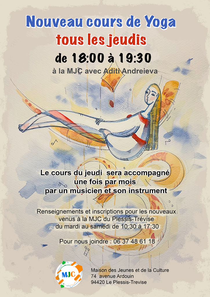 Ouverture d’un nouveau créneau de yoga tous les jeudis de 18h à 19h30. Ce cours s’adresse à tous : que vous soyez un pratiquant régulier souhaitant approfondir votre cheminement ou un débutant en quête de sérénité, chacun pourra évoluer à son propre rythme. La particularité de ce rendez-vous réside dans sa dimension sensorielle. Une fois par mois, la séance sera accompagnée par un musicien en direct. Flûte, violoncelle ou autres instruments viendront ponctuer la pratique, créant une résonance particulière entre les vibrations musicales et l’état de relaxation recherché. Cette union entre le yoga et la musique vivante offre un cadre privilégié pour lâcher prise et se reconnecter à l’instant présent.